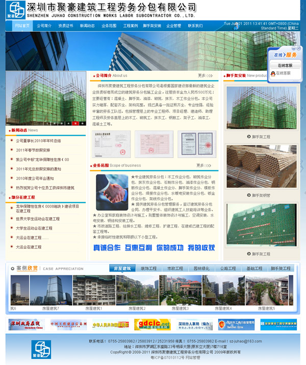 深圳市聚豪構筑工程勞務分包有限公司是憑據國度創建部最新的構筑業企業資質尺度而創建的構筑勞務分包施工企業,注冊資源金為人民幣500萬元;緊急策劃有:木匠作業分包、砌筑作業分包、抹灰作業分包、石制作分包、油漆作業分包、鋼筋作業分包、混凝土作業分、腳手架作業分、模板作業分包、焊接作業分包、水暖電安裝作業分包、鈑金作業分包、架線作業分包等。本公司力氣雄厚、配套齊備、架構完備。