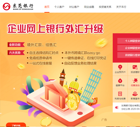 東莞銀行股份有限公司(以下簡稱本行)是經中國人民銀行批準,在東莞市工商行政管理局登記注冊的股份制商業銀行,成立于1999年9月8日。注冊資本為1,636,800,000元,下轄1個總行營業部、4家分行(廣州分行、深圳分行、惠州分行、長沙分行)、33家直屬支行、4家一級支行、75家二級支行,擁有2家子公司(開縣泰業村鎮銀行股份有限公司、東源泰業村鎮銀行股份有限公司)。